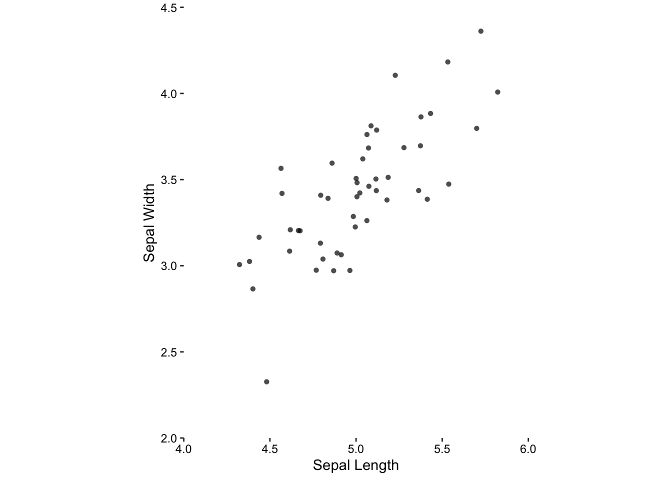 Here we have a clear choice for choosing an appropriate aspect ratio. Since both variables are on the same scale (i.e. measured in centimetres), the only logical choice is that the physical scales are also the same. That is, if 1.0 cm sepal width (scale) is drawn as 0.5 cm on paper (physical) then this should also be the case for sepal length.