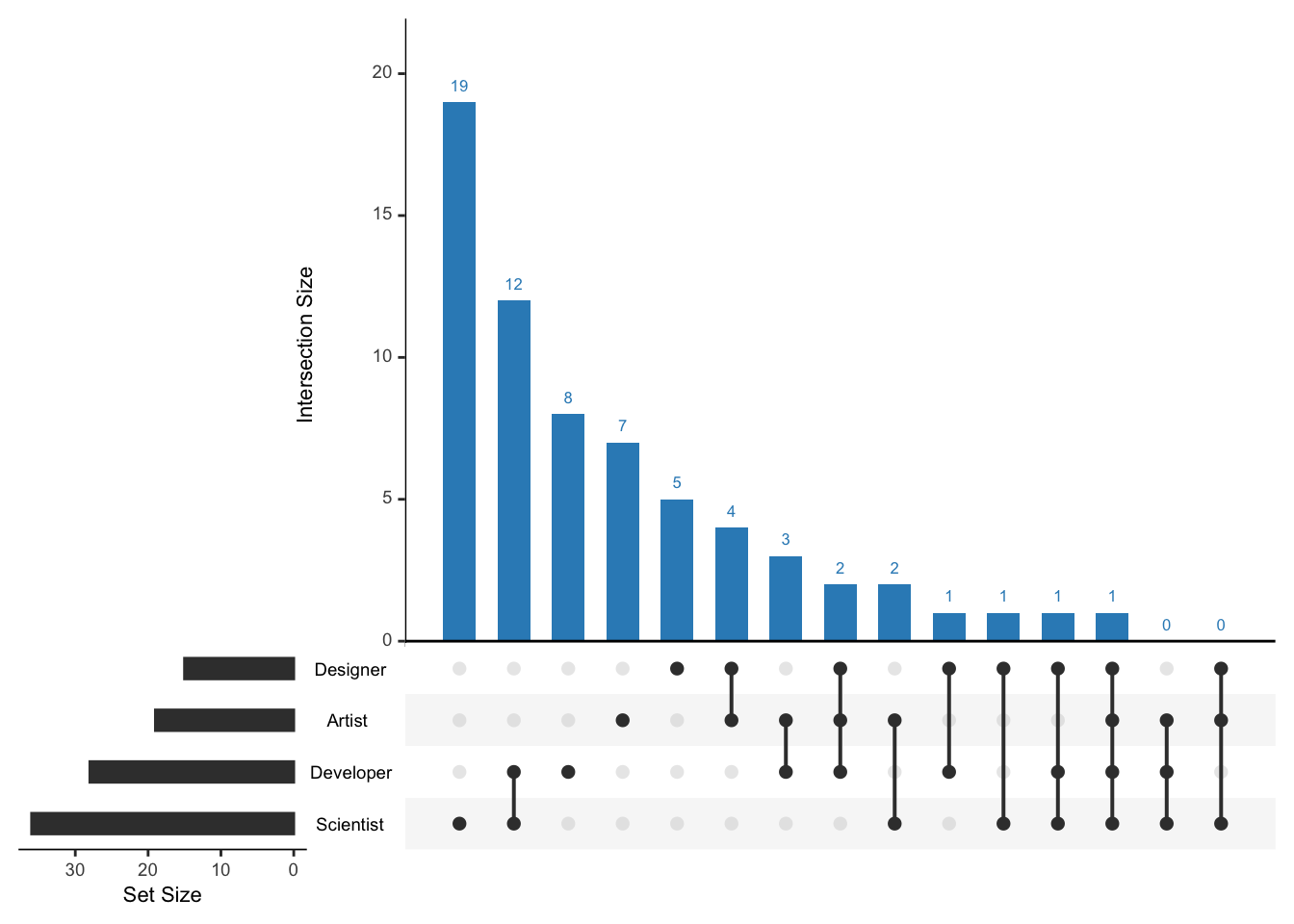 Finally, Intersection plots are an even better representation of Venn diagrams: